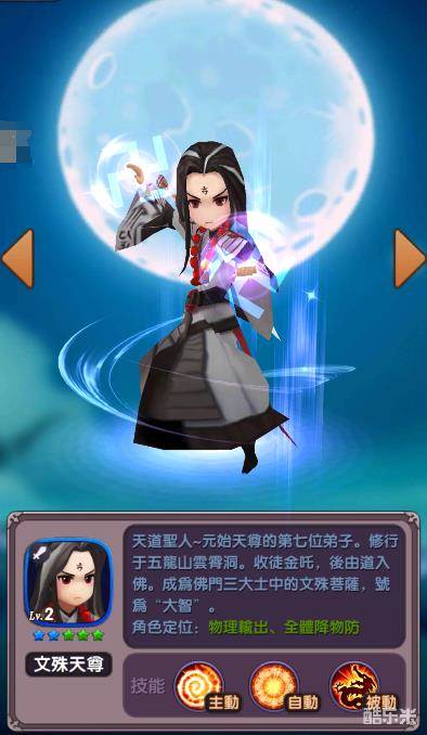 天道圣人~元始天尊的第七位弟子。修行于五龙山云霄洞。收徒金吒,后由道入佛。成为佛门三大士中的文殊菩萨,号为“大智”。