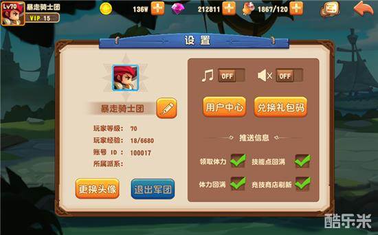在此界面,玩家可以查看自己的等级,当前经验,账号ID,所属军团。