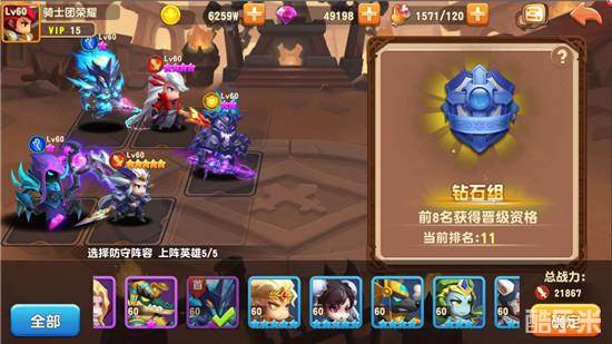 3、你通过设置防守阵容来与挑战自己的玩家较量,可以上阵5个英雄,若战斗超时,则防守的一方获胜。