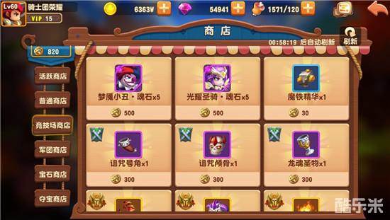 8、每晚21:00点结算竞技场排名,通过邮件发放竞技场的奖励,竞技场奖励可以在商店中购买超值的商品。