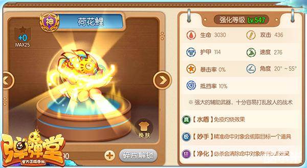 虽然荷花鲤是一款辅助武器,但在齐射赛中的表现确实出色。极技能“妙手”一旦偷走对手的护盾,对手基本只能默默等死。而且荷花鲤的必杀技也十分强大,可无视敌人所有buff效果直接命中靶心。即便是拿到无敌的残血家电,也禁不住荷花鲤的一个必杀技,护盾道具也是同理。