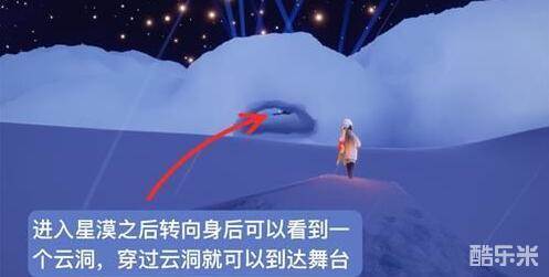 我们要去星光沙漠入口的左边的后面,你会看到一个云洞就在那个舞台角落里,然后我们进去以后就可以直接去到一个舞台了;