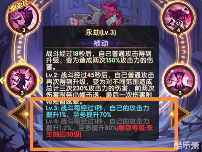 通过英雄界面查看刻印并进行提升,可以强化英雄的技能效果,提升英雄基础攻击以及血量。
