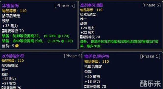 从四个项链的属性上我们可以看出,除了法系DPS的项链之外,其余三个也几乎接近BIS,甚至物理DPS的项链就是P1阶段的BIS装。这也许是为了照顾盗贼与战士而设计的吧,毕竟在P1阶段里,这两个职业要进团本或H本都太难了。