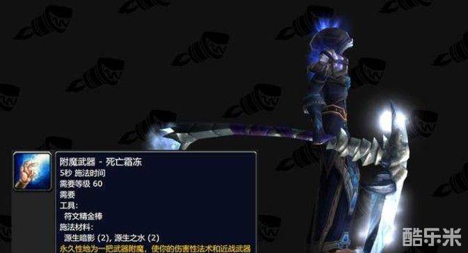 这是物理与法系通用的武器附魔,其附魔特效还算尚可,但PVE上的用处不是很大。好在这个附魔的视觉效果非常不错,所以附魔大师们可以收藏一下。