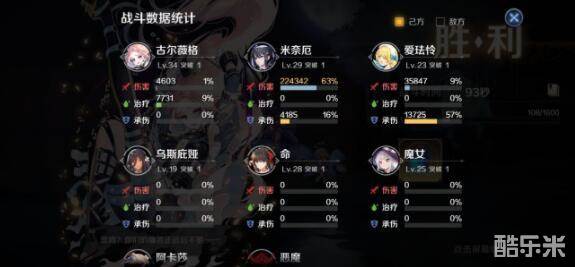 古尔薇格才是真的牛逼,这是我之前打的,她也不吃费,开个4费变身就可以放着不管了,还奶了将近8W的血,伤害占28%,主要是她是全体AOE的伤害,打单怪伤害比较低,而且变身后血量是第二管血,之前跨了一个突破打BOSS,BOSS一个技能就把我全队秒了,就古尔薇格没死,因为变身后有两罐血条,是真的猛。