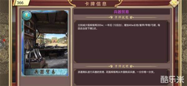 兵器贸易结束后,有兵贵神速就先用,没有就直接夭桃秾李,打下浓厚的资金基础