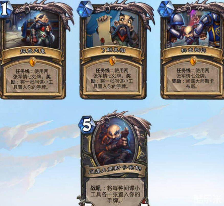 同样可以拿来做任务的还有军情七处特工(也就是我们常说的军七不过恐怕到了新版本就要改口了)以及中立的军情七处渗透者(战吼摧毁一个敌方奥秘,不过在这个环境来说应该就是约等于454白板了)。