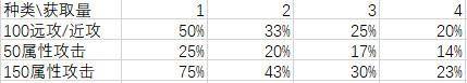 而且这几项之间还会互相稀释(比如土花拿100远程攻击和50土属性攻击的伤害,和拿150土属性攻击是一样的),而且只能加给对应角色,局限性较大,除去开局没得选的情况,后期只建议最多保留一个。虽然两个150属性攻击也有不错的收益,而且可以通过替换武器来让更多人吃到加成,但是需要两次拿到相同的神奇并踩中两个问号,条件太苛刻了。