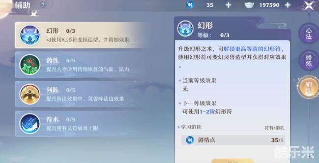 学习【幻形】每次消耗5点剧情点,1级可以使用1~2阶幻形符,2级3~4阶,3级可以学习5~6阶的幻形符,3级也是目前满级。后续肯定会开放4级5级之类,“物连”和“重生”这样强力的幻形技能也会随之出现!