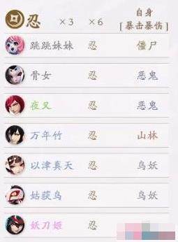 忍:骨女、妖刀姬、夜叉、以津真天、万年竹、姑获鸟