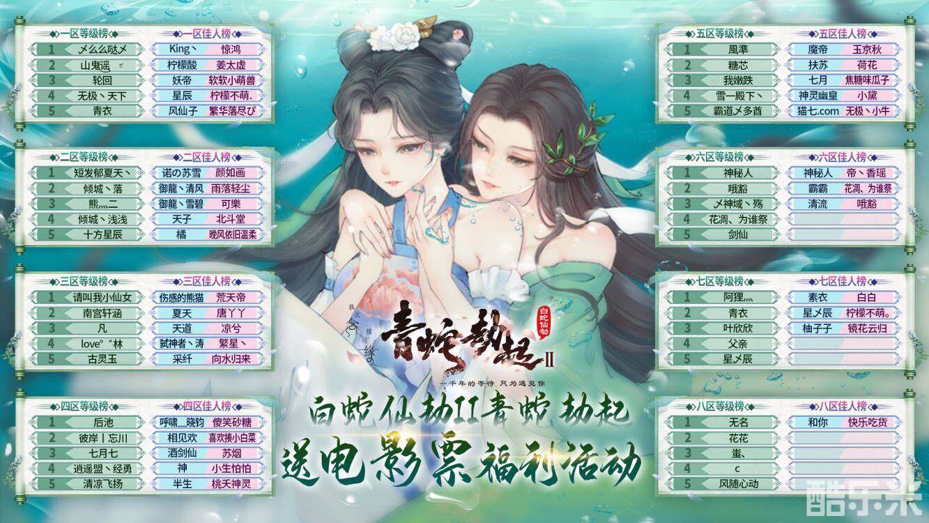 特别声明:等级榜与佳人榜同时上榜的玩家只记一次。此活动解释权归《白蛇仙劫II:青蛇劫起》运营组所有。