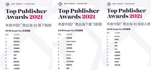 相比于国内游戏市场,游戏出海仍处蓝海。不同于腾讯、网易在国内的统治性地位,出海市场暂未出现一家独大,而是形成了百家争鸣、多元化竞争的局面,根据App Annie发布的游戏出海排行榜显示,下载量最高的依次为: 字节跳动、影笑科技、宝宝巴士,收入最高的依次为:FunPlus、莉莉丝、腾讯,下载量增幅最大的依次为:边锋网络、Topwar Studio、大觥科技,由此可见,下载量、收入、增幅的排名并未出现重合,没有一家公司在三个维度上占据绝对优势,海外市场依旧大有可为。