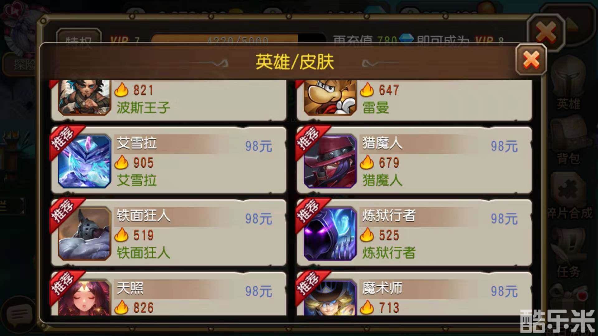 第二种是98英雄,这种英雄是要买的,不过说真的98英雄里面也是没几个好用的,当然比普通英雄要强大很多。