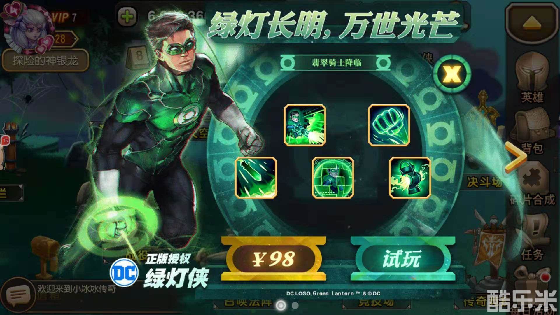 第三种是DC英雄,这是限时英雄,也是要98块钱买,不过每个英雄都具有一挑五的实力,所以土豪可以直接买,毕竟这种英雄打架还是很厉害的。