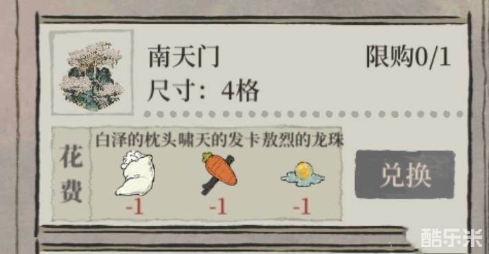 玩家需要集齐啸天的发卡,白泽的枕头以及敖烈的龙珠来兑换南天门这个建筑。