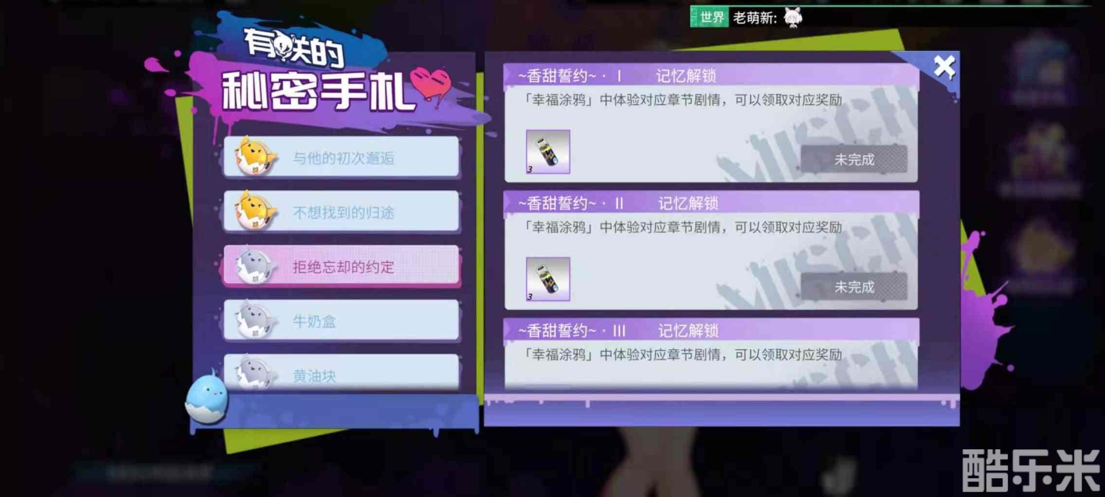 在完成幸福涂鸦和奶油陷阱关卡后可以在秘密手札中领取心动喷漆或者誓约蛋糕。