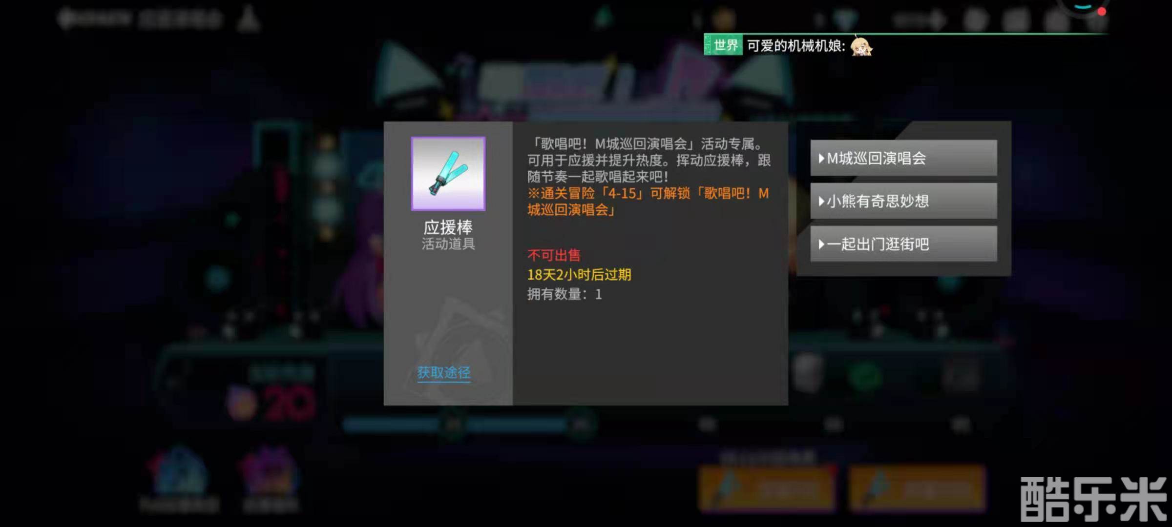 2.小熊有奇思妙想中特定的日期登录游戏可以领取应援棒;