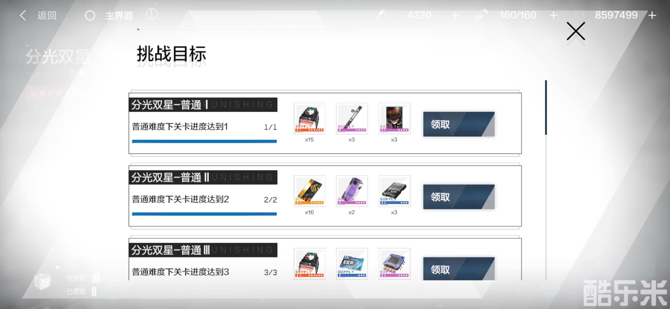 通关分光双星第三关,可以获得15个6星意识碎片,5张小支援经验集成和2个支援技能元件。