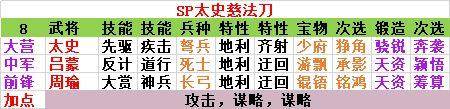 SP太史慈法刀,最好周瑜和SP太史慈都满红在用,强度在白板王异之上,强度很高,吕蒙红度无所谓。SP太史也可以换蒋钦。