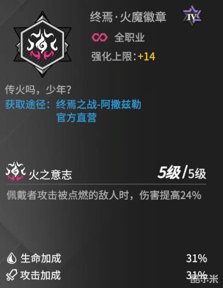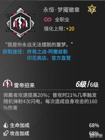 如前所述,因为莉莉奈的大招和被动都有较强的输出能力,所以莉莉奈最适合穿攻击套装,另外一个两件套可以选择增强输出的暴击,或者配适当增强生存的防御。徽章方面,可以选择提高输出能力的梦魇徽章,触发的随机弹射闪电可以有效强化多面输出能力;而火魔徽章则十分适配莉莉奈的点燃能力,强化莉莉奈面对点燃敌人的击杀能力。除此之外,也可装备术师专属的寓言徽章。