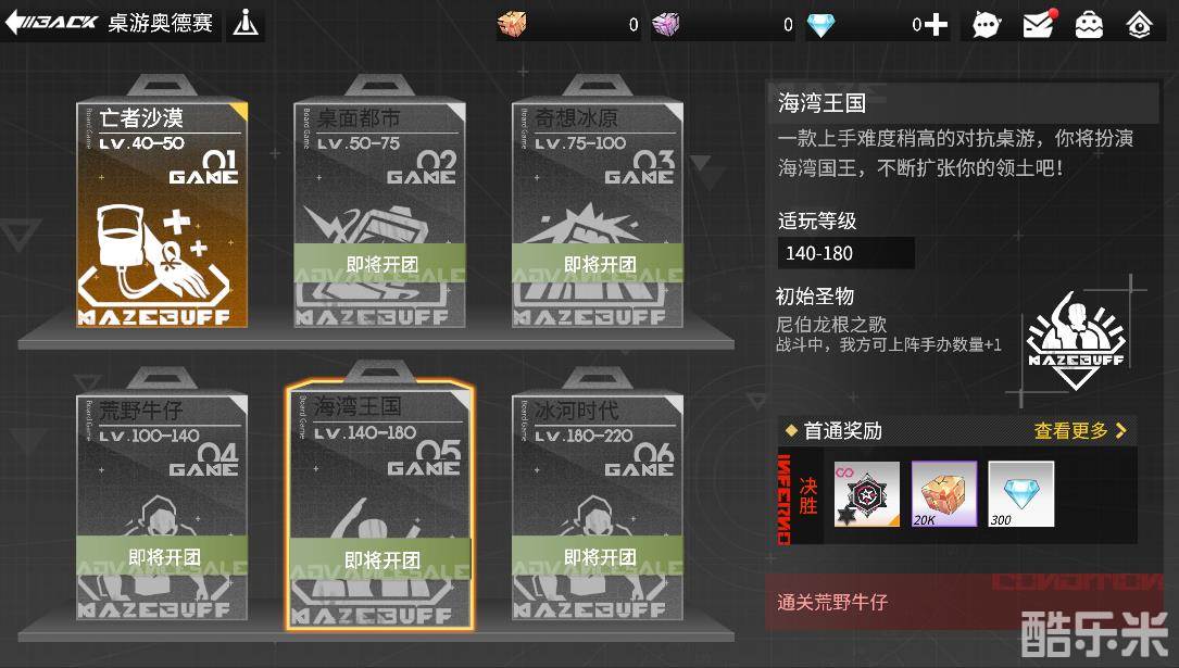 收藏家冒险进度达到第五章才会解锁桌游奥德赛玩法;首次进入奥德赛玩法的时候,会出现一个桌游选择界面,收藏家需要选择一个桌游参加。需要通关前置桌游才会解锁后续桌游的参与权限。越靠后的桌游参与奖励和首通奖励越丰厚,但是挑战难度也越大;即便奖励超级吸引人,收藏家们拿不到的时候也不要气馁哦,毕竟每个桌游都有对应的手办等级要求,越级挑战总是比较艰难的。