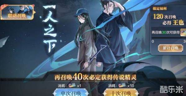 7月22日5:00-10月22日5:00活动期间游戏内将开放[一人之下]联动限时卡池,通过抽取该卡池累积神唤120次可直接领取王也。