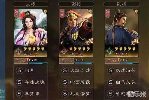 4:因为不论貂蝉还是法正本身不具备输出能力,所以三势阵搭配的第三个武将一定是具有稳定及高额爆发输出能力的武将,所以我们选择了陆逊,陆逊自带战法火烧连营发动率可观,并且伤害还不俗。