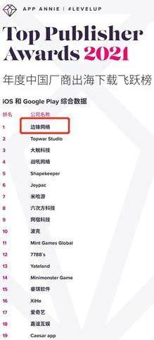 根据App Annie发布的“2021年度中国厂商出海下载飞跃榜”,下载量增幅最大的依次为:边锋网络、Topwar Studio、大觥科技这三家公司,为什么边锋出海能做到一鸣惊人,接下来我们一探究竟。