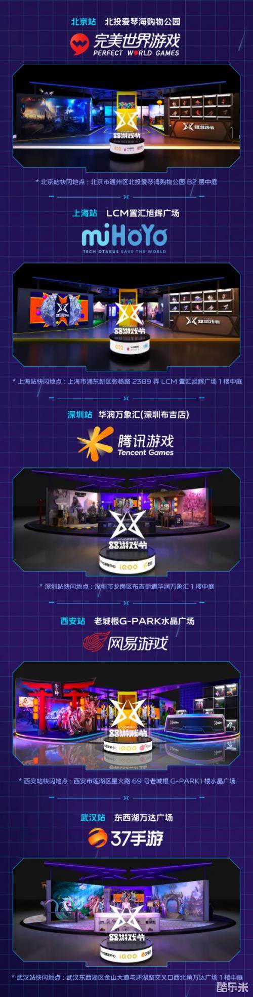 从8月6日至8月8日,vivo游戏中心和iQOO将联合完美世界游戏、米哈游、腾讯游戏、网易游戏、37手游五大游戏厂商,分别在北京北投爱琴海购物公园、上海LCM置汇旭辉广场、深圳华润万象汇(深圳布吉店)、西安老城根G-PARK水晶广场、武汉东西湖万达广场打造游戏主题快闪店,现场会有超过20款游戏和大面积场地用来还原游戏场景,让玩家获得身临其境的体验。不仅如此,为了增强玩家的参与感,现场还会有体验挑战、与coser合影等环节,让你欣喜而来、满载而归!