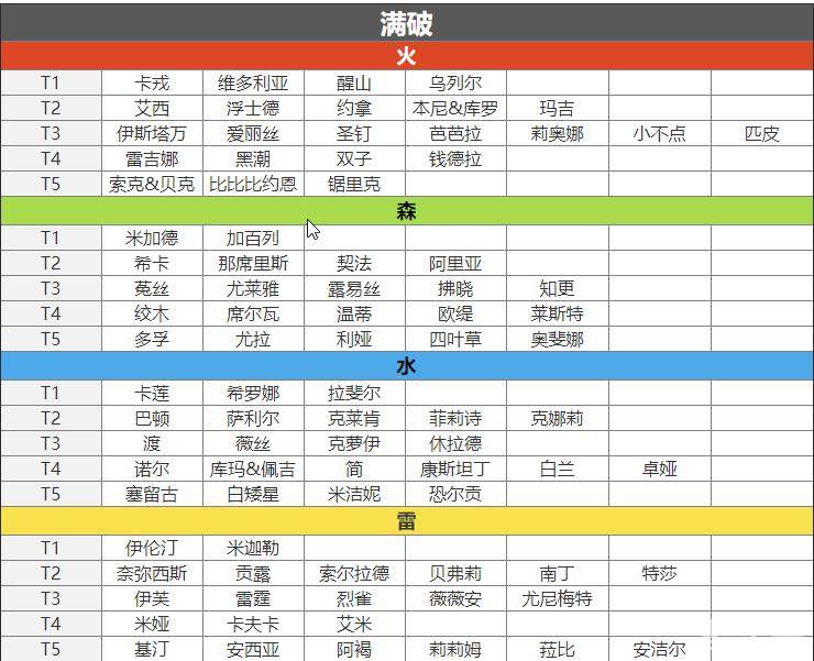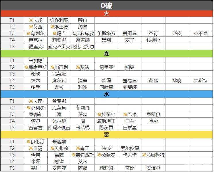 ps:本人(启光攻略组-平定者火炮)个人认为,对于新人来说,请不要过于追求拥有各属性的高梯度角色,而是更注重单属性角色的搭配,即: