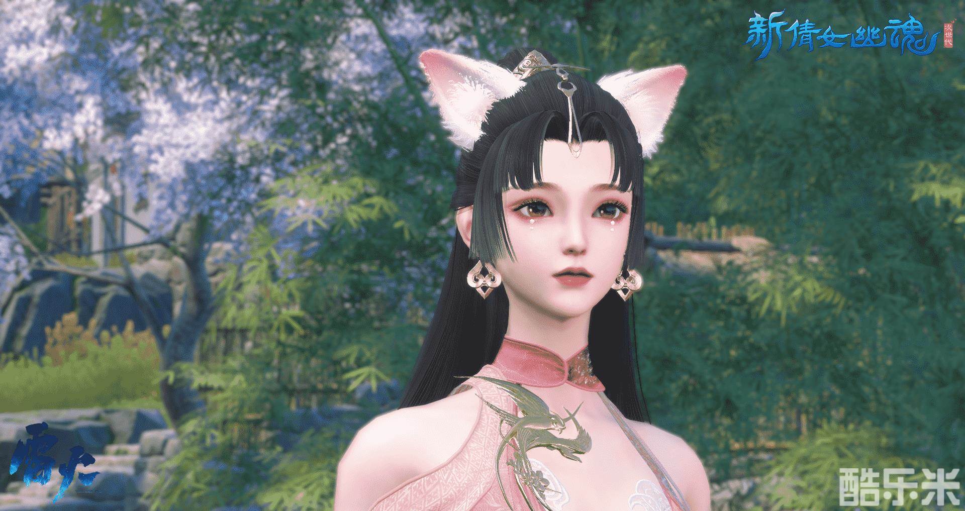红罗惹风流,春烟浇画骨。遥遥寻梦影,不在尘间处。与宝青坊主同款狐耳头饰「妙青」,如自有生命一般,在少侠的一动一静、一举一动之间盈盈抖动。此耳饰通过运用最新的动捕技术,使得自身的摆动更为自然,甚至可与其他头饰叠加佩戴,可爱双倍!