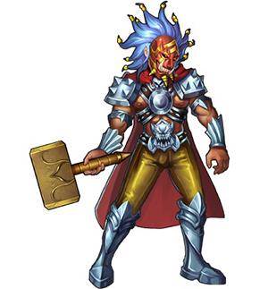 商暴手拿一把榔头,目测是为了霹雷用。身着铠甲,红色斗篷,戴着一个红色面具,至于他为什么会戴面具,小编也很好奇。
