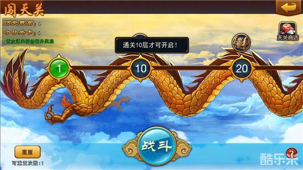 闯天关商店需要通关十层才开启。小伙伴要努力通关呢!