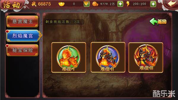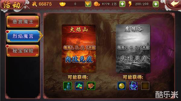 烈焰魔宫分火焰山和魔狼谷两个副本。