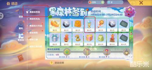 在活动界面,点击黑森林-黑森林签到。我们就可以看到第四天签到就能够得到蔚蓝共振宝石,数量是2个。