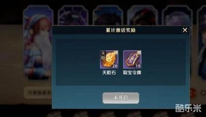 当前稳激活到一定数量时可以获得丰厚的奖励:8条(5*茉莉、2*取宝令牌)、16条(20*铁英、4*取宝令牌)、32条(30*天工核、5*取宝令牌)、48条(1*二阶助燃石、8*取宝令牌)、64条(50*驱动机轴、10*取宝令牌)80条(20*天乾石、15*取宝令牌)