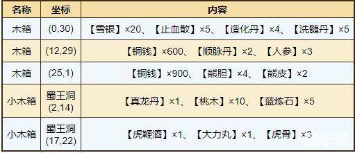 蜀王洞(17,2),(15,6)搜索可以获得一些东西