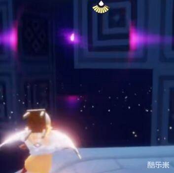 2、然后就往前面一直走,就在这个平台往右看,然后这个紫色光芒掉下来,这时候飞过去碰一下就可以了呢。