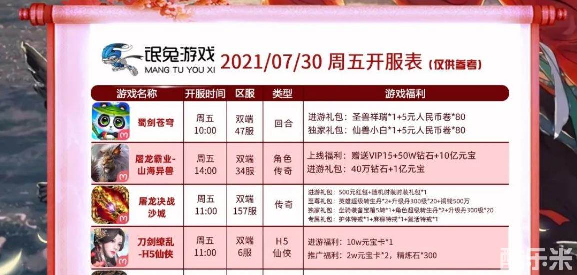 氓兔游戏官网-30号开服表《白蛇仙劫》运营团队周末大放送