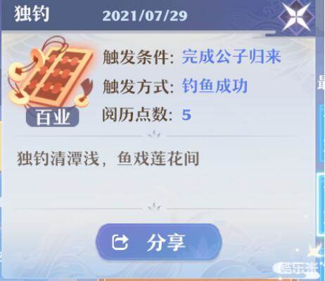 1、独钓(钓鱼成功就行,需完成神州见闻公子归来)