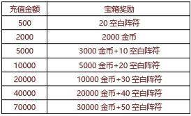 【活动内容】金币奖励满额返还,额外赠送大量空白阵符,天地水火,风雷山泽,奇门阵符,尽收囊中,一切尽在本期月末超值大放送。