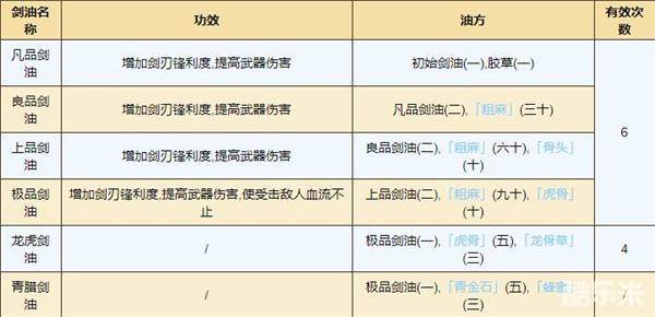 剑油可以涂抹在剑武器上面,使其具有一定的特殊效果.
