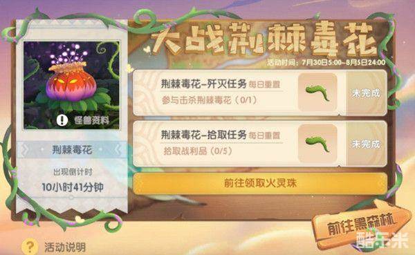 摩尔庄园大战荆棘毒花活动怎么玩?荆棘毒花怎么打?游戏在7月30日开启了全新的大战荆棘毒花活动,其为boss挑战活动,也是黑森林版本中的第二个boss,玩家需要成功击败荆棘毒花才行,可以与好友一同组队进行挑战,接下来小编就为大家分享一下该活动的打法攻略。