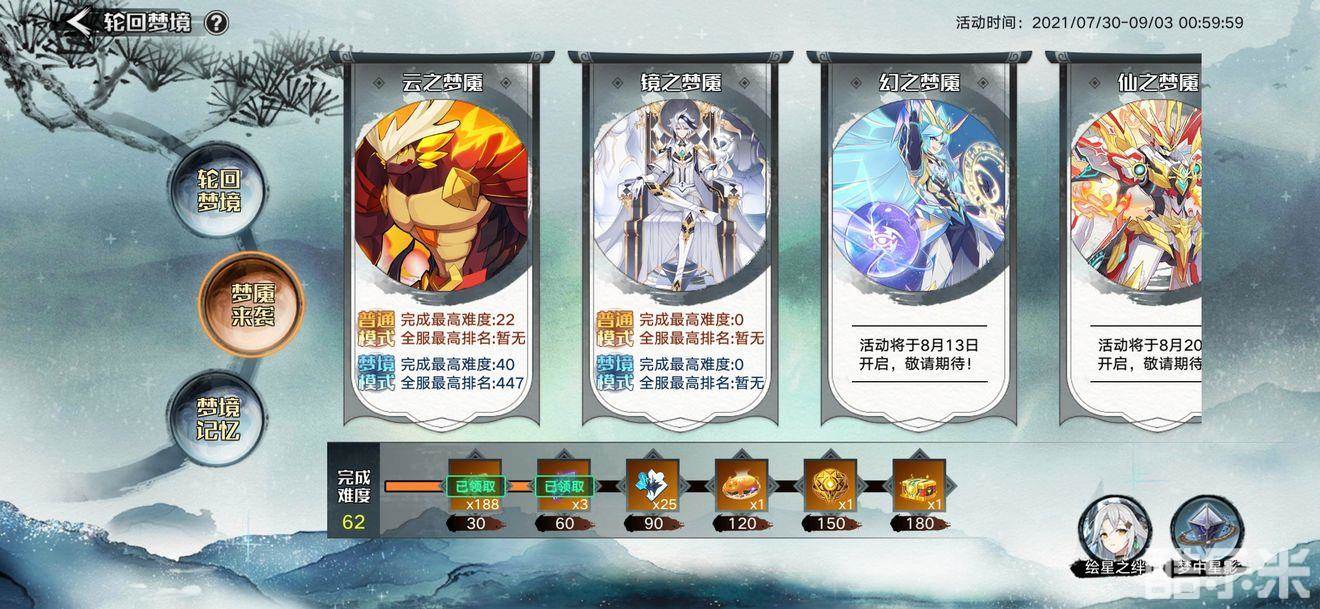(2)梦魇来袭:有普通模式、梦镜模式(可带版本buff),并且可以选择难度等级【类似梵天版本的神界守护者】