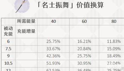 被动的value同样可以仿照刚才的算法进行计算,但事实上算出来的y不是真正的等效面板充能,[原面板充能]*y才是等效面板充能。比如精1桂木斩对于60能量角色的y是111.1%,因为主词条也是充能,所以这时候实际面板充能是145.9%,那等效的充能就是145.9%*111%=162.1%,实际提升了16.2%。
