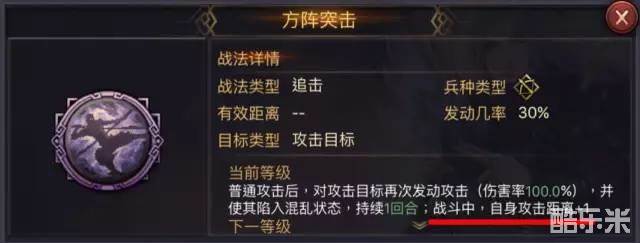 太史慈战法经过加成后,攻击距离提高了1,且是全程增加的,这意味着太史慈在大营位置可以直接攻击到对面大营。