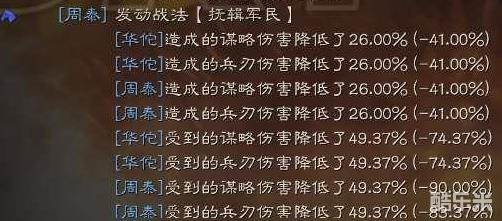 4.华佗和军民的联动:华佗可以给我军群体加统率,军民的减伤比例是受自身统率影响的,华佗比周泰速度快,华佗指挥阶段先放青囊,有三分之二的几率给到周泰,给到之后会让军民的减伤比例提升。