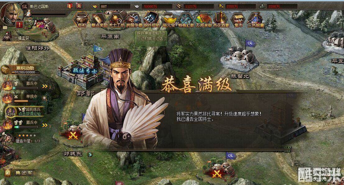总结:相对于等级略高,战力不是很低的玩家来说,只要粮食足够,全程血战获得五亿经验是没有问题的。还望堂哥以后能多出几个有练兵符道具的活动。