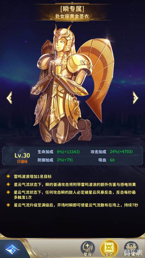 1.女神试炼中可使用目标斗士进行对战,所有都是均为240级,30级圣衣属性